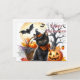 Diese schwarze Katze Postkarte ist ideal, um Halloween-Grüße an alle Freunde, Freunde und Katzenliebhaber zu schicken. Das Halloween-Bild zeigt eine klassische digitale Aquarellfarbe einer schwarzen Katze. Es ist in einem Hexenhut verziert und liegt neben einem geschnitzten Jack O'Lantern Kürbis. Ein unheimlicher toter Baum, Fledermäuse und Vollmond füllen die Szene. Die Postkarte enthält auch einen Gruß, den Sie auf Ihre Art und Weise "Happy Halloween" nennen können. "AI-generiertes Kunstwerk mit Designrichtung von Susang6"