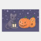 Halloween Black Cat Pumpkins Lantern Purple Rechteckiger Aufkleber