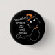 Eine schwarze Katze, die eine Hexe trägt und orangefarbene Sterne in diesem halloween themed design, neben Zitat aus Shakespeares Macbeth Act 4 Scene 1 - "Etwas Schlechtes kommt so!"