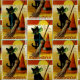 Vintage Halloween Grußkartenabbildungen zeigen eine schwarze Katze, Hexen Besen und Hut mit dem Text "Friendly Fairy Witch or Fay, erfüllen den Wunsch, den Sie sich heute wünschen."