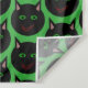 Diese phantastische Tapisserie zeichnet sich durch eine schwarze Katze mit spitzen Ohren, leuchtend grüne Augen und ein leicht rotes Grinsen aus. Dieses gruselige Kätzchen ist perfekt für Halloween- oder Katzenliebhaber.