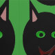 Diese phantastische Tapete ist mit einer schwarzen Katze mit spitzen Ohren, hellgrünen Augen und einem leicht roten Grinsen versehen. Dieses gruselige Kätzchen ist perfekt für Halloween- oder Katzenliebhaber.