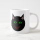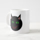 Diese phantastische Tasse zeigt eine schwarze Katze mit spitzen Ohren, leuchtend grüne Augen und ein leicht rotes Grinsen. Dieses gruselige Kätzchen ist perfekt für Halloween- oder Katzenliebhaber.