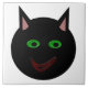 Diese phantastische Kachel weist eine schwarze Katze mit spitzen Ohren, leuchtenden grünen Augen und einem leicht roten Grinsen auf. Dieses gruselige Kätzchen ist perfekt für Halloween- oder Katzenliebhaber.