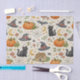 A whimsical, storybook-style Halloween pattern filled with gentle magic and cozy charm. Softly illustrated black kittens with bright, curious eyes mingle with plump pumpkins, bow-tied witches’ hats, crescent moons, friendly bats, delicate spiderwebs, tiny spiders, woodland mushrooms, trailing vines, and scattered stars. A warm cream, lightly textured background enhances the hand-painted watercolor look, giving the design a nostalgic, fairy-tale feel rather than anything spooky.