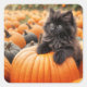 Halloween Black Kitten on a Pumpkin Quadratischer Aufkleber