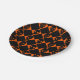 Lebhaftes, sich wiederholendes Muster schwarzer und orangefarbener Diamanten mit schwarzen Schädeln. Gut für ein Halloween-Party.