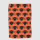 Dieses phantastische Golfhandtuch ist mit einer schwarzen Spinne mit acht haarigen Beinen, gelben Augen mit großen schwarzen Pupillen und einem offenen Mund mit ihren Reißzähnen ausgestattet. Es gibt einen orangefarbenen Text, der "Happy Halloween" und einen passenden orangefarbenen Hintergrund lautet.