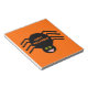 Dieses phantastische Notizblock verfügt über eine schwarze Spinne mit acht haarigen Beinen, gelbe Augen mit großen schwarzen Schülern und einen offenen Mund, der seine Reißzähne zeigt. Es gibt einen orangefarbenen Text, der "Happy Halloween" und einen passenden orangefarbenen Hintergrund lautet.