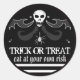 Halloween Black & White Skull Label Trick oder Treat Leckereien Label - Essen Sie auf eigene Gefahr (oder passen Sie Ihren eigenen Text an)