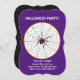 Halloween Schwarze Witwe Spinne auf königlich lila Einladung. Alle Texte und Zahlen sind personalisiert.