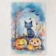 Halloween-Blue Cat mit Pumpkins Beängstigend Puzzle
