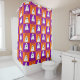 Dieser phantastische Duschvorhang ist mit einem niedlichen, weißen Geist mit schwarzen Augen und einem breiten, schwarzen Mund ausgestattet. Jeder Geist sitzt entweder auf einem orangefarbenen Quadrat oder einem lila, farbigen Quadrat, und in jedem Quadrat ist entweder orangefarbener oder lila Text mit Boo! Das Ergebnis ist ein Muster von Quadraten und Geistern.