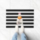 Halloween "Boo" Kürbis Fußmatte. Dies ist ein süßes Halloween-Design in modernen schwarz-weißen Streifen.