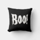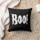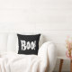 Halloween Boo Kissen vorne schwarz/weiß und hinten schwarz gezeigt. Passen Sie dieses Objekt an oder kaufen Sie, wie es ist.