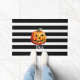 Halloween "Boo" Pumpkin Doormat. This is cute Halloween design in modern black- white stripes.