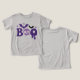 Halloween Boo Skull Bats Moderne Typografie Tri-Blend Shirt zeigt den Text "Boo" in der modernen lila Schrift Typografie mit Fledermäusen, Sternen und einem Schädel. Ideal für Halloween-Partys und Feiern. Erstellt von Evco Studio www.zazzle.com/store/evcostudio