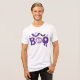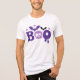 Halloween Boo Skull Bats Moderne Typografie Tri-Blend Shirt zeigt den Text "Boo" in der modernen lila Schrift Typografie mit Fledermäusen, Sternen und einem Schädel. Ideal für Halloween-Partys und Feiern. Erstellt von Evco Studio www.zazzle.com/store/evcostudio