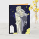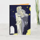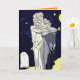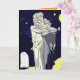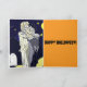 Auf dieser gruseligen Halloweenkarte findet man eine Skelettbride und einen Bräutigam, die in einem Friedhof tanzen. Ein ungewöhnliches Design, um All Hallows Eve zu feiern.