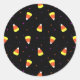 Whimsikale, Halloween-Aufkleber mit einem süßen Muster von Süßmais und winzigen, farbenfrohen Sternen auf schwarzem Hintergrund. Vergnügen Sie sich für jeden Bonbonliebhaber!