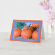 Pumpkins, eine mit einem Lächeln, auf einer blauen und orangen Karte für Ihre Enkel.
