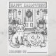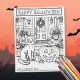 Halloween thematische Aktivitätsseiten für Kinder, Jugendliche oder Erwachsene. Eine schwarze Katze sitzt auf einer Veranda mit Kürbis. Schönes dickes Papier, um die Färbung zu erleichtern.