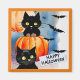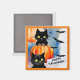 Niedliches Bild von zwei, schwarzen Katzen mit Kürbissen und Fledermäusen, ist auf diesem Magneten zu Halloween zu sehen. Nachricht auf Magnet, "Happy Halloween", macht dies zu einer niedlichen Dekoration für Zuhause oder das Büro zu Halloween. Macht auch ein großartiges kleines Geschenk!