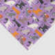 Niedliche Katze, schwarze Katze, Tabbattacke, Persikatze, Siamkatze und Tuxedokatze tragen Hexenhüte und Halloween-Kostüme mit verstreuten Fledermäusen und Pfotendrucken.