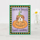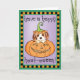 Senden Sie Halloween-Grüße mit dieser Karte eines niedlichen Cav Welpen in einem lächelnden Jack-o-Lantern. Ideal für Kinder jeden Alters, die Cavalier King Charles Spaniels und Halloween Liebe. Viel Glück!