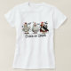 Weißer T - Shirt mit drei niedlichen Hühnern, die in Halloween-Kostümen gekleidet sind - Mumie, Gespenst und ein sprichwörtlich schwarz-rotes Huhn - mit dem lustigen Satz "Küken oder Leckerei". Ideal, um dem Halloween-Kleiderschrank eine spielerische Touch hinzuzufügen