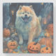 Halloween Chow Chow mit Pumpkins Beängstigend Steinuntersetzer
