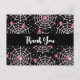 Vielen Dank Postcard mit einem niedlichen, nahtlosen Muster mit weißen Spinnweben und rosa Spinnen.
