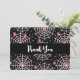 Flat Dankeschön-Karte mit einem niedlichen, nahtlosen Muster mit weißen Spinnweben und rosa Spinnen.