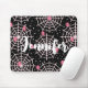 Ein Mauspad mit niedlichem, nahtlosen Muster mit weißen Spinnweben und rosa Spinnen.