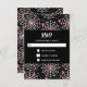 Eine RSVP-Karte mit einem niedlichen, nahtlosen Muster mit weißen Spinnweben und rosa Spinnen.