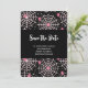 Save the Date Karte mit einem niedlich nahtlosen Muster mit weißen Spinnweben und rosa Spinnen.