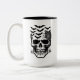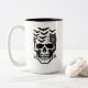 Die Tasse des Kaffees wird in einem Halloween-Schädelprint gezeigt. Passen Sie dieses Objekt an und wählen Sie eine andere Tasse oder kaufen Sie, wie es ist. Lizenziertes Bild