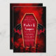 Sie werden diesen Särgen mit Fledermausflügeln und spokigen Bäumen auf einem roten und schwarzen, rauchigen Hintergrund Liebe geben. Es stehen passende Einladungen zur Verfügung.
