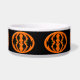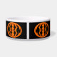 Diese phantastische Tierschale hat ein orangefarbenes Oval mit sechs Krähen. Jede Krähe hat gelbe Augen mit schwarzen Schülern und ausgestreckten Flügeln. Die Krähen fliegen einander entgegen und bilden eine ovale Form. Der Hintergrund ist schwarz.