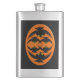 Dieser phantastische Kolben weist ein orangefarbenes Oval mit sechs Krähen auf. Jede Krähe hat gelbe Augen mit schwarzen Schülern und ausgestreckten Flügeln. Die Krähen fliegen einander entgegen und bilden eine ovale Form. Der Hintergrund ist schwarz.