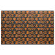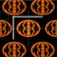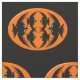 Dieses phantastische Kunsthandwerk ist perfekt für alle Ihre Handwerksarbeiten geeignet. Das Design ist in einem orangefarbenen Oval mit sechs Krähen gehalten. Jede Krähe hat gelbe Augen mit schwarzen Schülern und ausgestreckten Flügeln. Die Krähen fliegen einander entgegen und bilden eine ovale Form. Der Hintergrund ist schwarz.