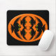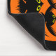 Dieses wunderschöne Halloween-Mousepad hat ein orangefarbenes Oval mit sechs Krähen. Jede Krähe hat gelbe Augen mit schwarzen Schülern und ausgestreckten Flügeln. Die Krähen fliegen einander entgegen und bilden eine ovale Form. Der Hintergrund ist schwarz.