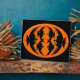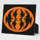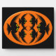 Diese phantastische Plakette ist in einem orangefarbenen Oval mit sechs Krähen gehalten. Jede Krähe hat gelbe Augen mit schwarzen Schülern und ausgestreckten Flügeln. Die Krähen fliegen einander entgegen und bilden eine ovale Form. Der Hintergrund ist schwarz.
