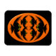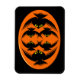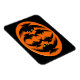 Dieser phantastische Magnet weist ein orangefarbenes Oval mit sechs Krähen auf. Jede Krähe hat gelbe Augen mit schwarzen Schülern und ausgestreckten Flügeln. Die Krähen fliegen einander entgegen und bilden eine ovale Form. Der Hintergrund ist schwarz.