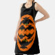 Diese phantastische Schürze ist in einem Oval in Orange mit sechs Krähen gehalten. Jede Krähe hat gelbe Augen mit schwarzen Schülern und ausgestreckten Flügeln. Die Krähen fliegen einander entgegen und bilden eine ovale Form. Der Hintergrund ist schwarz.