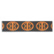 Dieser phantastische Tischläufer hat ein orangefarbenes Oval mit sechs Krähen. Jede Krähe hat gelbe Augen mit schwarzen Schülern und ausgestreckten Flügeln. Die Krähen fliegen einander entgegen und bilden eine ovale Form. Der Hintergrund ist schwarz.