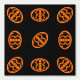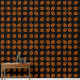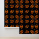 Diese phantastische Tapete hat ein orangefarbenes Oval mit sechs Krähen. Jede Krähe hat gelbe Augen mit schwarzen Schülern und ausgestreckten Flügeln. Die Krähen fliegen einander entgegen und bilden eine ovale Form. Der Hintergrund ist schwarz.