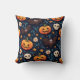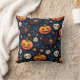 Helle orangefarbene Kürbis, schwarze Fledermäuse und weiße Schädel bilden einen starken Kontrast, weiße Blume und Äste sorgen für Details. Es ist ein ansprechendes Design mit einer Touch von Cutness in einer insgesamt dunklen und geheimnisvollen Atmosphäre.