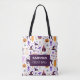Passen Sie diesen niedlichen Trick an oder behandeln Sie Halloween Tote mit dem Namen Ihres Kindes. Illustration macht Halloween beängstigende, geistreiche Collage. Lila und gelbe Farbtöne machen diesen niedlichen Sack Pop! Tolle Tasche, die für viele Halloween verwendet werden kann zu kommen! Weitere Taschengrößen, Farben und Stile sind erhältlich