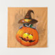 Halloween Cute Kitty Witch and Pumpkin Friend Wandteppich